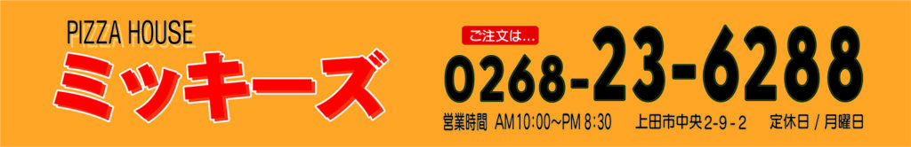 当店は、昭和60年にピザ宅配業としてオープンし、おかげさまで40余年 地元の皆様に愛されてきたピザ店です。信州は日本の中心に位置し、又 上田は真田幸村の名将でも全国に知られた城下町として栄えた町です。 綺麗な空気と清らかな水と豊かな緑に恵まれた山国であり、その信州の 人々が長い歴史の中でつちかってきた暮らしと、そこから生まれた くるみ・りんご・野菜などの食材はかけがえのない宝物として人々に親しまれて きました。その新鮮な素材を選び抜き、ミッキーズピザの食材として 使用させていただいております。毎日手造りで一枚一枚丁寧に仕上げて います。焼きたての味をご家庭でお楽しみください。